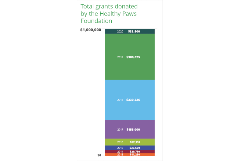When the Healthy Paws Foundation made its first donation of $250 to the Progressive Animal Welfare Society (PAWS) and a few other charities that help homeless pets in 2013, we could not have imagined what it would grow to become.